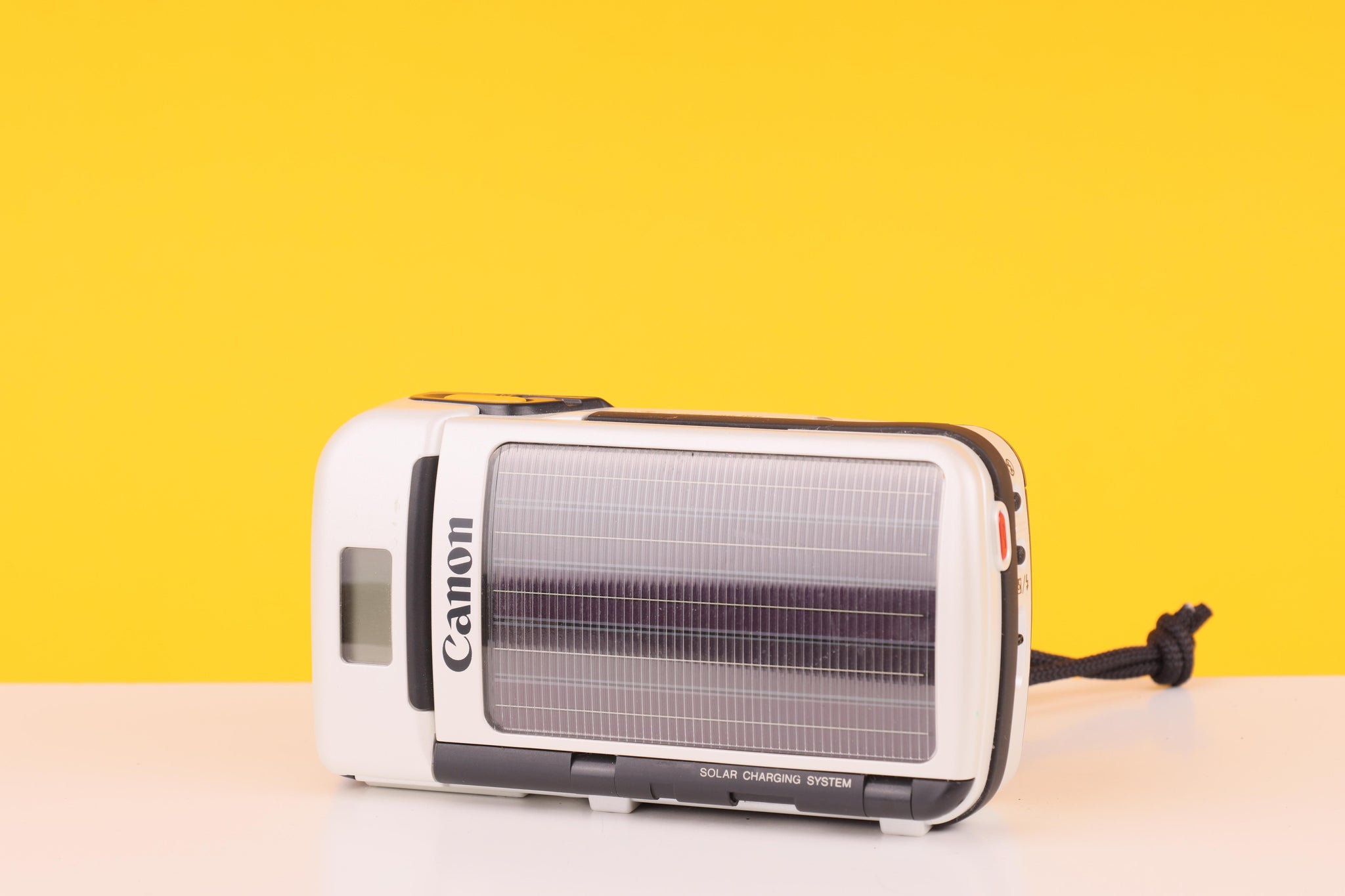 A March 1995 model from Canon's very successful Sure Shot range, the Sure Shot Del Sol - known as the Prima Sol in continental Europe and Autoboy SE in Japan - was the world's first camera using solar energy for all its power requirements.[1] Its front is covered with a solar panel that recharges an internal lithium ion battery. Other than the ground-breaking technology, the functionality and specifications of the Del Sol are similar to those of the Sure Shot M, a compact camera with a wide-angle prime lens.