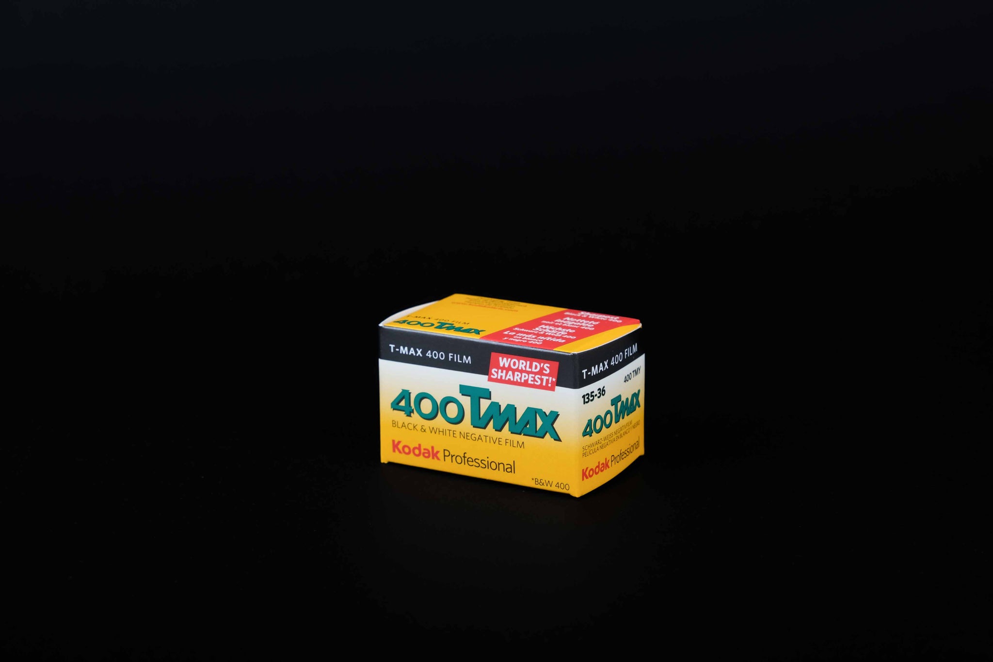 KODAK PROFESSIONAL T-MAX 400 Film ⁄ 400TMY is a continuous-tone panchromatic black-and-white negative film especially useful for photographing dimly lighted subjects or fast action, for extending flash distance range, and for photographing subjects that require good depth of field and fast shutter speeds with maximum image quality for the film speed. It is also useful for scientific and biomedical work, especially when fluorescence photography is required. It has high speed (ISO 400/27° in most developers), very high sharpness, very fine grain, and very high resolving power; it allows a high degree of enlargement