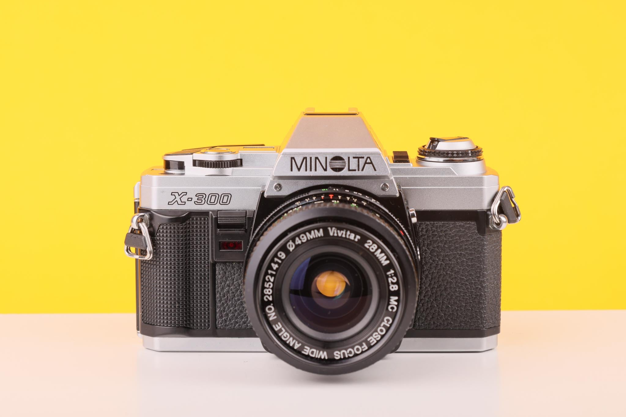 TESTED AND FULLY WORKING: Minolta X-300 35mm Film Camera with Vivitar Mc 28mm f2.8 Lens