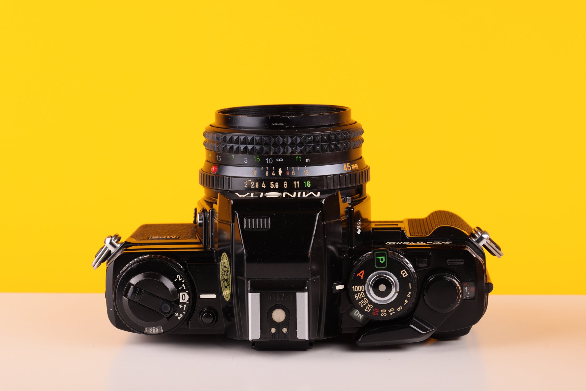 TESTED AND FULLY WORKING: Minolta X-700 35mm Film SLR Camera with Minolta MD Rokkor 45mm f/2 Lens